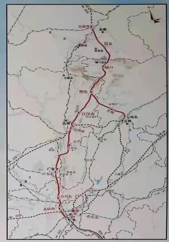 项目起自在建西安至安康高速铁路安康西站,经岚皋、城口、宣汉、达州、大竹、广安、合川、北碚,至重庆枢纽重庆西站,线路全长477.9公里(其中新建线路446.7公里),设11座车站;同步建设樊哙经开州至万州连接线,长90.2公里,设3座车站。配套新建本线至兰渝铁路、襄渝铁路、成达万高铁联络线约26公里。