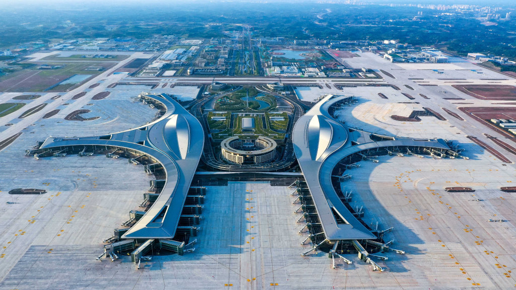 6月27日,继上海、北京之后,成都成为中国大陆第三个拥有双国际枢纽机场的城市——成都天府国际机场迎来了首航时刻。该机场是国家“十三五”期间规划建设的最大民用运输枢纽机场项目,更是成渝地区双城经济圈国家战略的重要支撑。