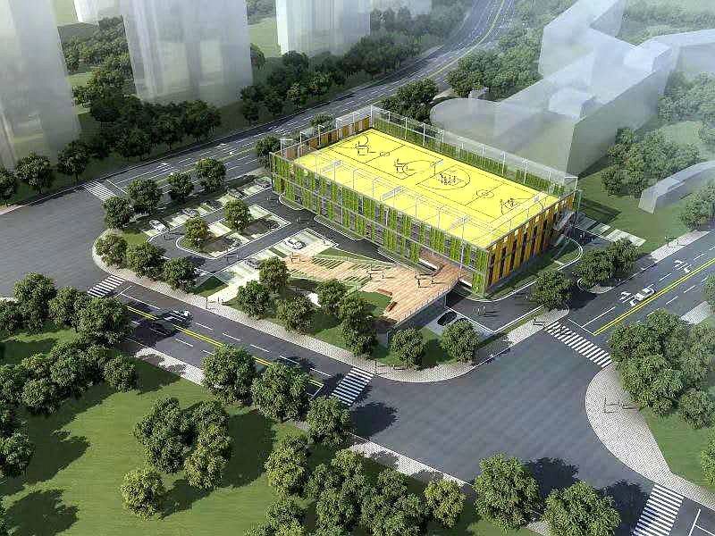 值得一提的是,光明路停车场项目还设计了设备用房、公共卫生间等区域,屋顶绿化与地面景观一体连续,将独立的人行出入口和屋顶景观、运动场相结合。而汽车库的屋面顶部还可以作为居民活动的场所,上面设计了两个篮球场,三个羽毛球场,供居民娱乐。
