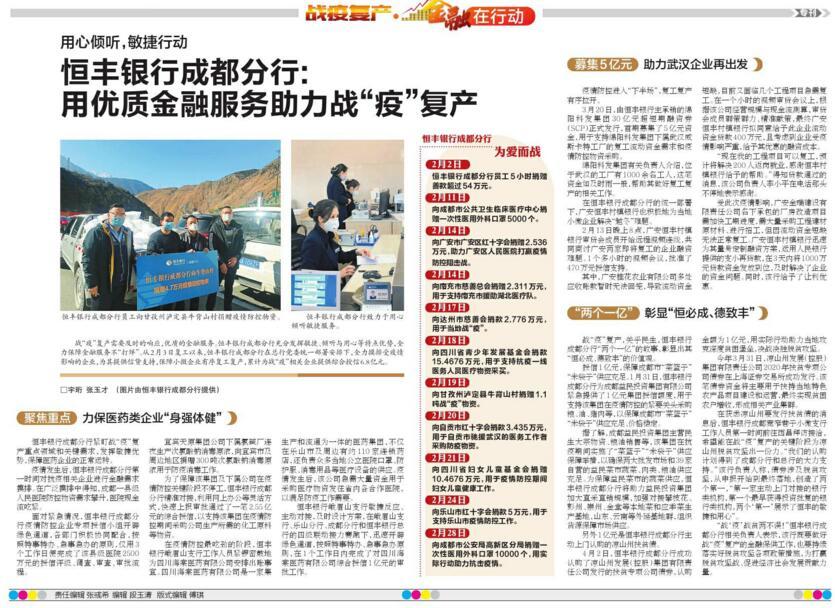 用心倾听,敏捷行动。战“疫”复产需要及时的响应,优质的金融服务。恒丰银行成都分行充分发挥敏捷、倾听与用心等特点优势,全力保障金融服务不“打烊”。