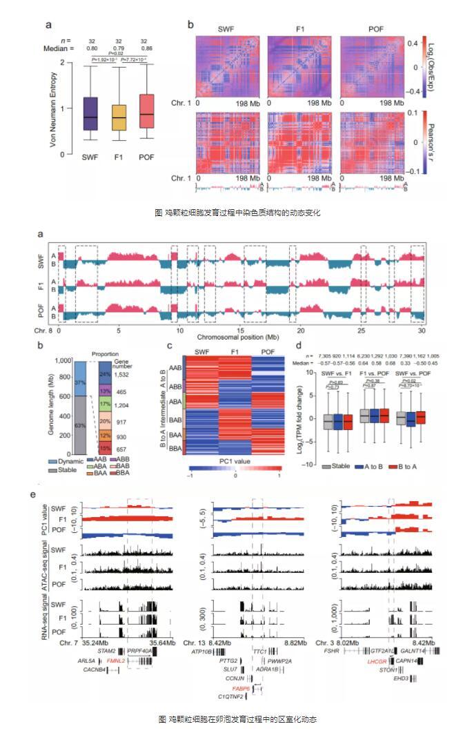 1月13日,记者从四川农业大学获悉,最近该校动物科技学院李地艳教授团队和李明洲教授团队联合在Nature Communications在线发表了题为Dynamic transcriptome and chromatin architecture in granulosa cells during chicken folliculogenesis (鸡卵泡发生过程中颗粒细胞染色质空间结构变化介导的基因转录调控)的研究论文。该研究揭示了蛋鸡卵泡发生过程中的调控机制,可以为提高本土鸡的产蛋率提供思路,还可以为卵巢癌研究提供重要参考资料。