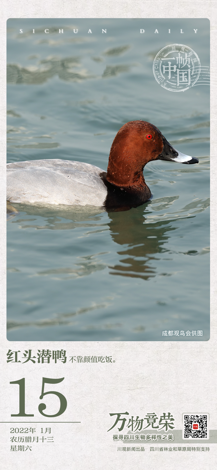 自贡沿滩新城龙湖公园,向来是观鸟爱好者们的大本营。被繁茂的湖中水草和两岸植被吸引至此的冬候鸟类中,有一种名叫“红头潜鸭”。