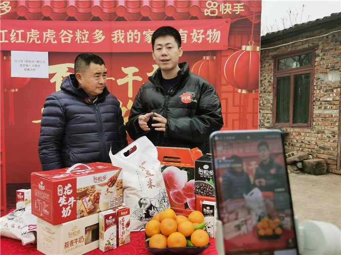 这是川观新闻联合快手平台,重磅推出以“村长带货 川货出村”为主题的《新年有川味》助农直播活动,首站便来到了资阳市雁江区老君镇。霍发平和大溪村村支书樊亮、龙星村村支书何平康对着镜头,通过拥有近175万粉丝的“川观新闻”快手号,向全国网友们推介当地特色农产品。直播开始仅一个小时,便有超过10万人次的网友观看。据快手后台数据显示,本场直播开播3小时,累计有29.8万人次网友在线观看。