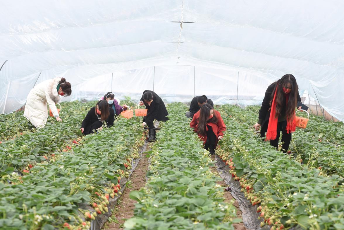 隆冬时节,莓果飘香。1月14日上午,在成都东部新区石板凳街道菜子村的草莓采摘基地,彩旗飘扬,歌舞声欢快愉悦,一片热闹喜庆的景象。在严格落实疫情防控工作相关要求的前提下,由该街道党工委、办事处主办的以“‘莓’好生活 幸福石板”为主题的第三届草莓采摘游启动仪式正式举行,来自各地的朋友一起向“莓”好“生活”出发,品尝“莓”好幸福的味道。据悉,本届草莓采摘游将持续到今年3月底。