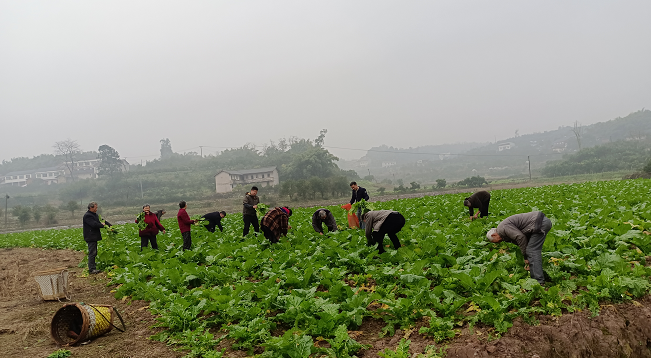 在资中县商务和经济合作局的动员下,资中县三果蔬菜种植专业合作社负责人郑文表示愿意捐赠蔬菜驰援咸阳,并在1月11日至12日组织专合社成员加班加点收割儿菜。专合社成员通过两天的努力,共收割11吨儿菜。