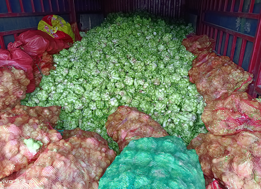 1月14日,内江市资中县三果蔬菜种植专业合作社捐赠的11吨儿菜抵达陕西省咸阳兴平市,由当地红十字会接收。
