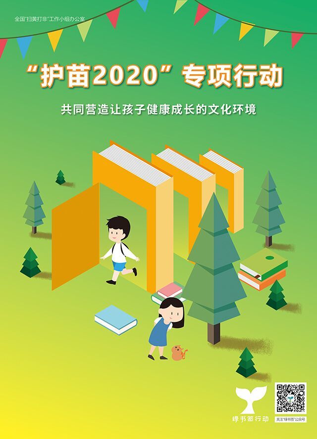 活动以“护助少年儿童健康成长 抵制有害出版物和信息”为主题,围绕2020“绿书签行动”进校园、进书城、进社区、进媒体、进网站、进乡村、进执法部门等七个不同场景,开展内容丰富的“护苗”主题宣介活动,营造保护未成年人的浓厚氛围;在中小学组织开展“扫黄打非·护苗”、保护知识产权、“网络安全课”“青少年网络素养课”等专题教育,以及“绿书签”优秀图书推荐活动,配合开展爱国主义教育读书和“经典诵读”活动。