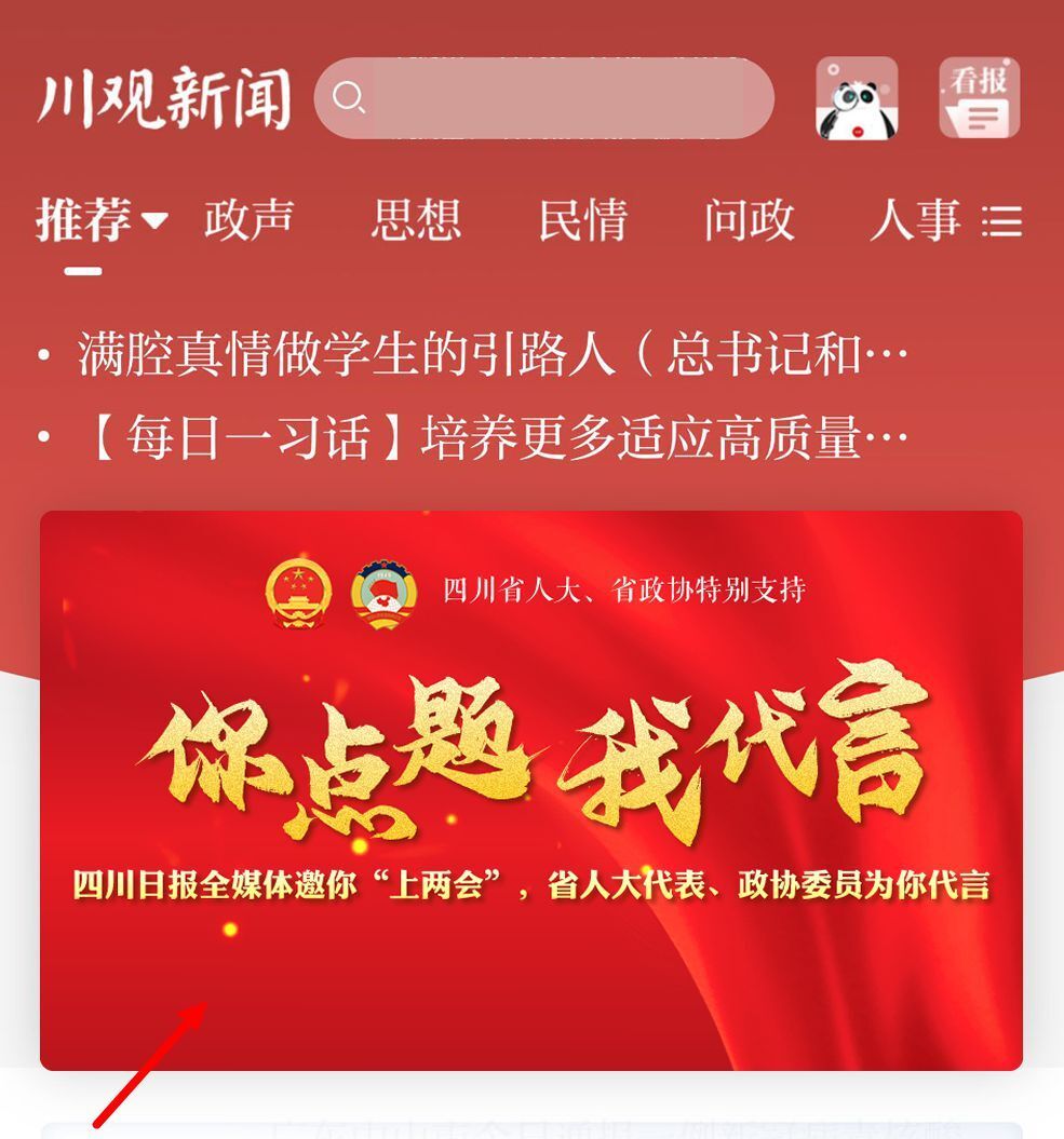 方式二:打开川观新闻客户端,在首页幻灯区点击活动页面进入,点击“点题”按钮可进行留言。