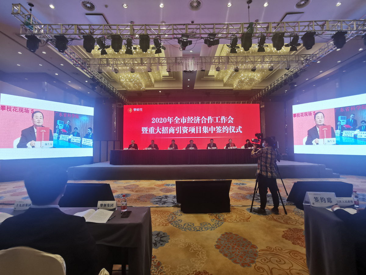 5月27日,2020年攀枝花市经济合作工作会暨重大招商引资项目集中签约仪式举行,借助互联网直播平台,对7个重大招商引资项目进行“云签约”,投资总额达170亿元。
