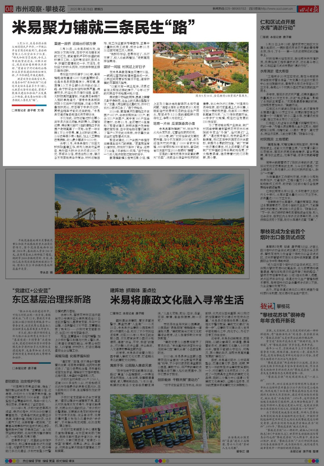 脱贫攻坚全面收官之年,米易县如何“再加把劲”?记者近日走访米易县多个乡(镇),从脱贫攻坚项目建设、贫困户聚居点建设和推动产业发展三个侧面,看米易如何凝心聚力铺就三条民生“路”。