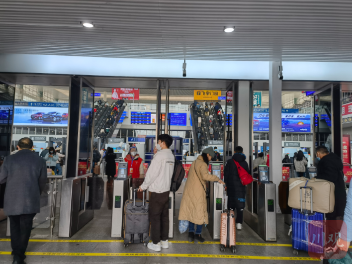 为了满足旅客便捷出行需求,缩短旅客出行时间,成都东站客运值班主任吕小龙介绍,成都东站对所有设备进行了巡检更新,更换了17个检票口共计85台检票闸机,候车室至商业层新安装8台自动扶梯,并且在自助核验闸机处设置了四个人工核验通道,为老年群体等重点旅客提供快速核验服务。