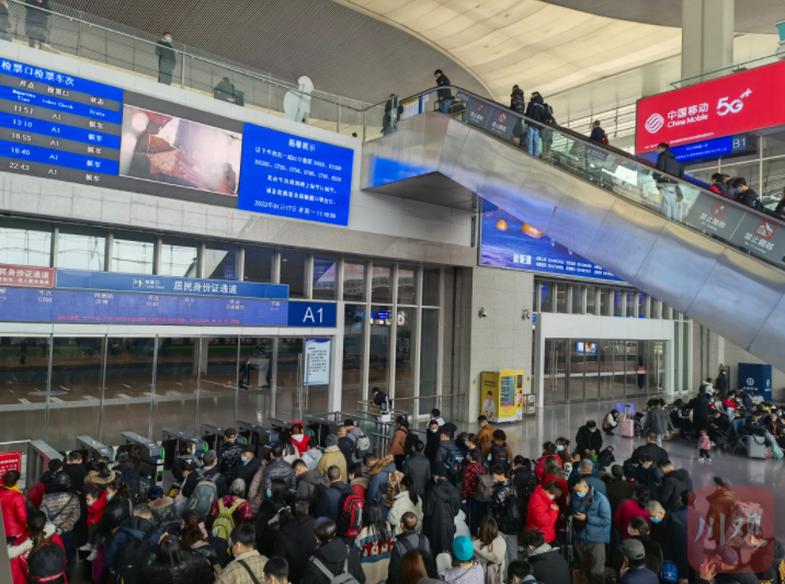 与去年相比,今年春运要相对更“热闹”一些。据中国铁路成都局集团有限公司成都车站有关负责人介绍,春运首日,成都东站发送旅客12.83万人,同比2021年增加5.9万人,增加85.66%。