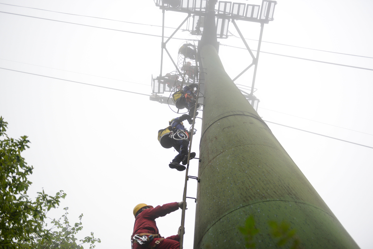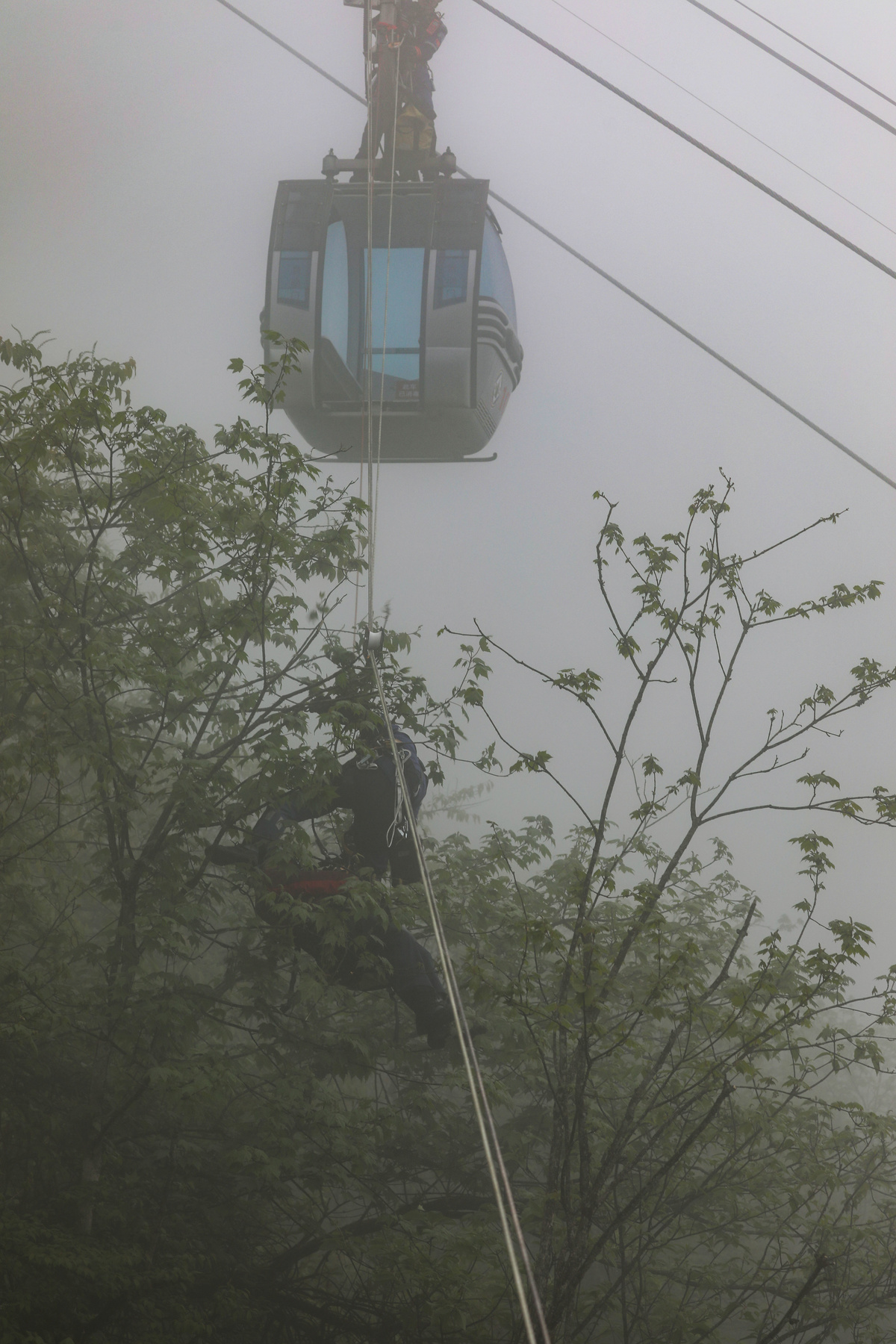 由于金顶索道地处高海拔地区,坡度大,海拔高,气候恶劣,索道下方地形复杂,有深沟,也有悬崖,峨眉山山岳救援队要在万变的环境中,稳定地利用绳索救援技术,灵活、安全、高效地完成突发救援任务。