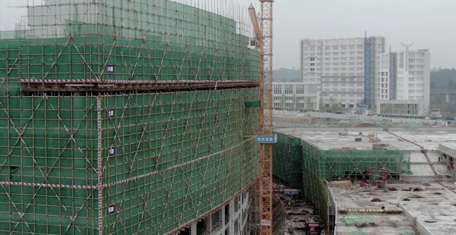 1月20日,成都天府国际生物城一角,汇宇创新药物研究院建设项目现场,两栋主体建筑轮廓初现,项目正在紧张地进行结构施工及外装饰装修工作。