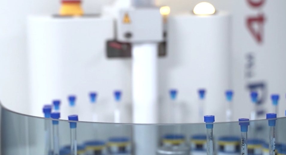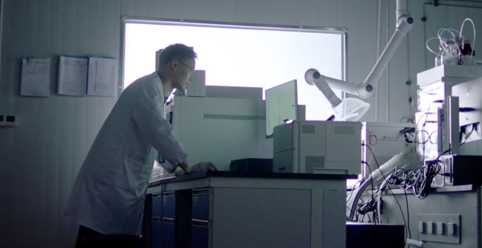 近日,成都天府国际生物城的汇宇制药研究院2楼,小分子创新药研究所的庾博士正在核磁共振波谱仪前分析试剂,并记录相关数据。