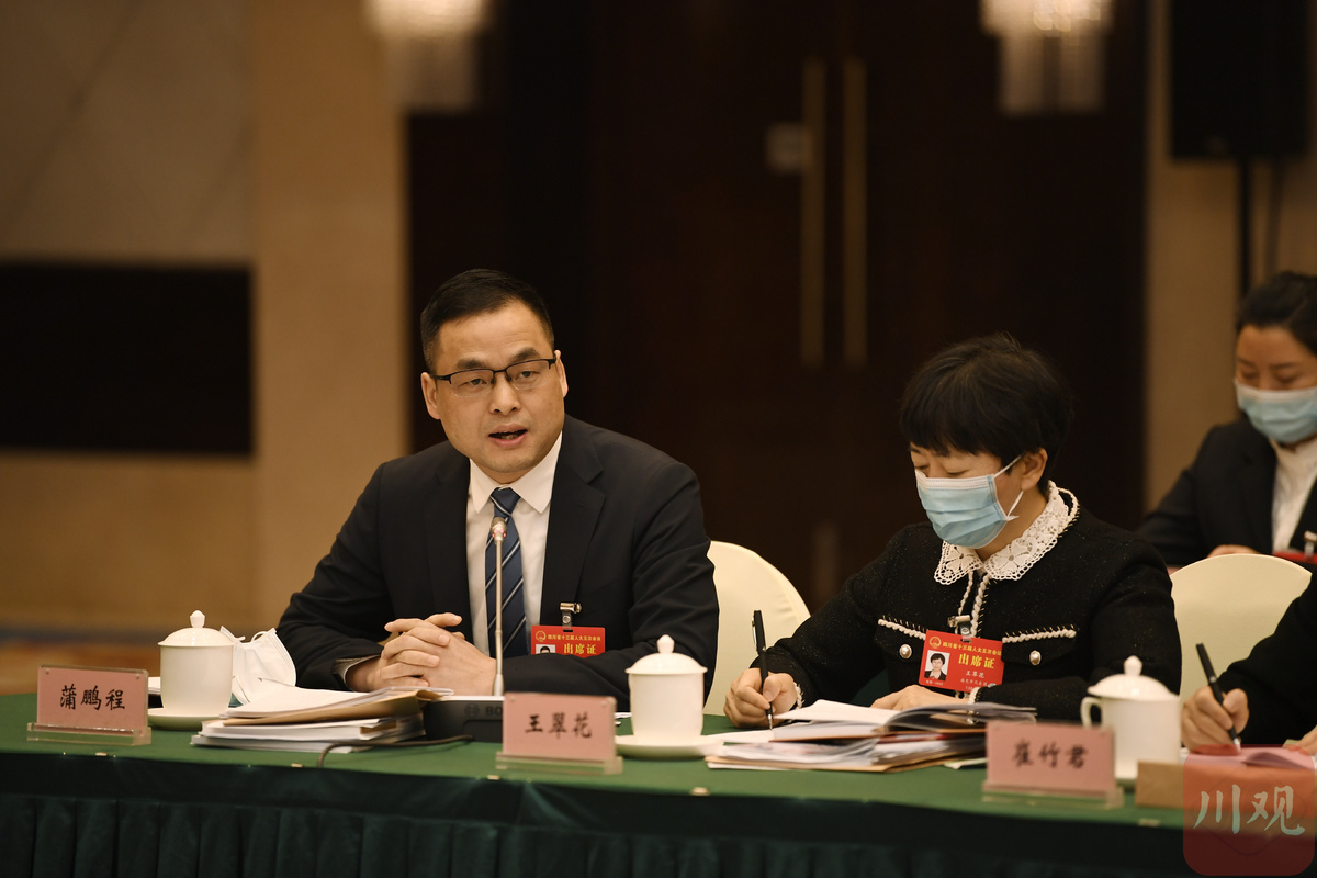 蒲鹏程代表(左一)建议:进一步加大对省级新区的推进和支持力度,研究出台支持省级新区建设政策。