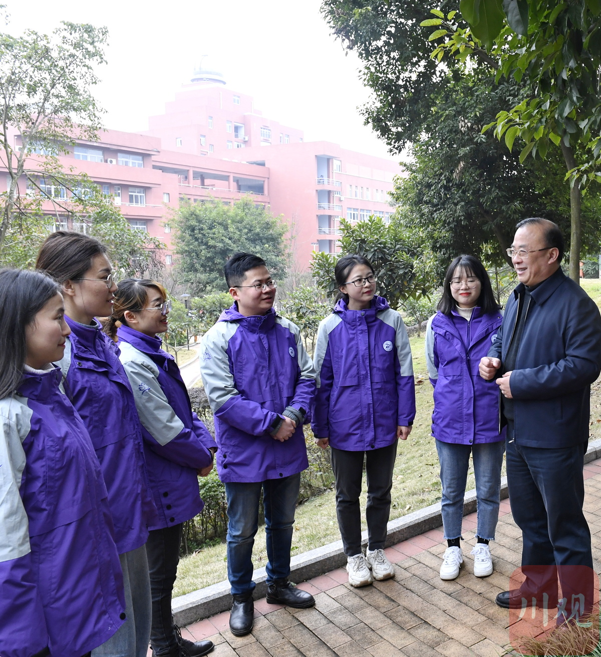 1月12日,涂刚代表(右一)与老师们交流收集相关建议。