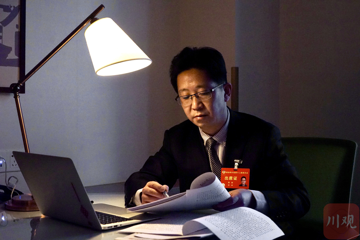 1月19日,陈彬委员在完善提案内容。