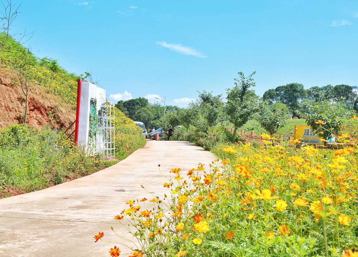 泸州鼎立置业有限公司董事长、上马镇黄桷坝村“特聘村主任”曾敬平牵头的项目—— “龙湖水香”乡村旅游田园综合体,过道周边的花都开了。周梦颖摄