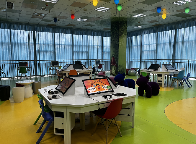 远看图书馆,形似一本书。走进一看,窗明几净的环境让人身心愉悦,各种充满线条感和时尚感的设计扑面而来,少儿数字化体验室、亲子借阅室、多媒体视听室、少儿活动室、地方文献陈列室、报刊阅览室……明确的分区让读者一来就能够找到“目的地”。
