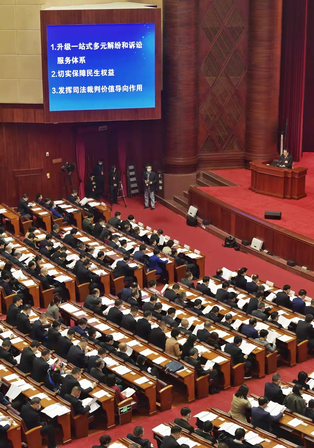 代表对省人大常委会工作报告、“两院”报告报以热烈掌声。