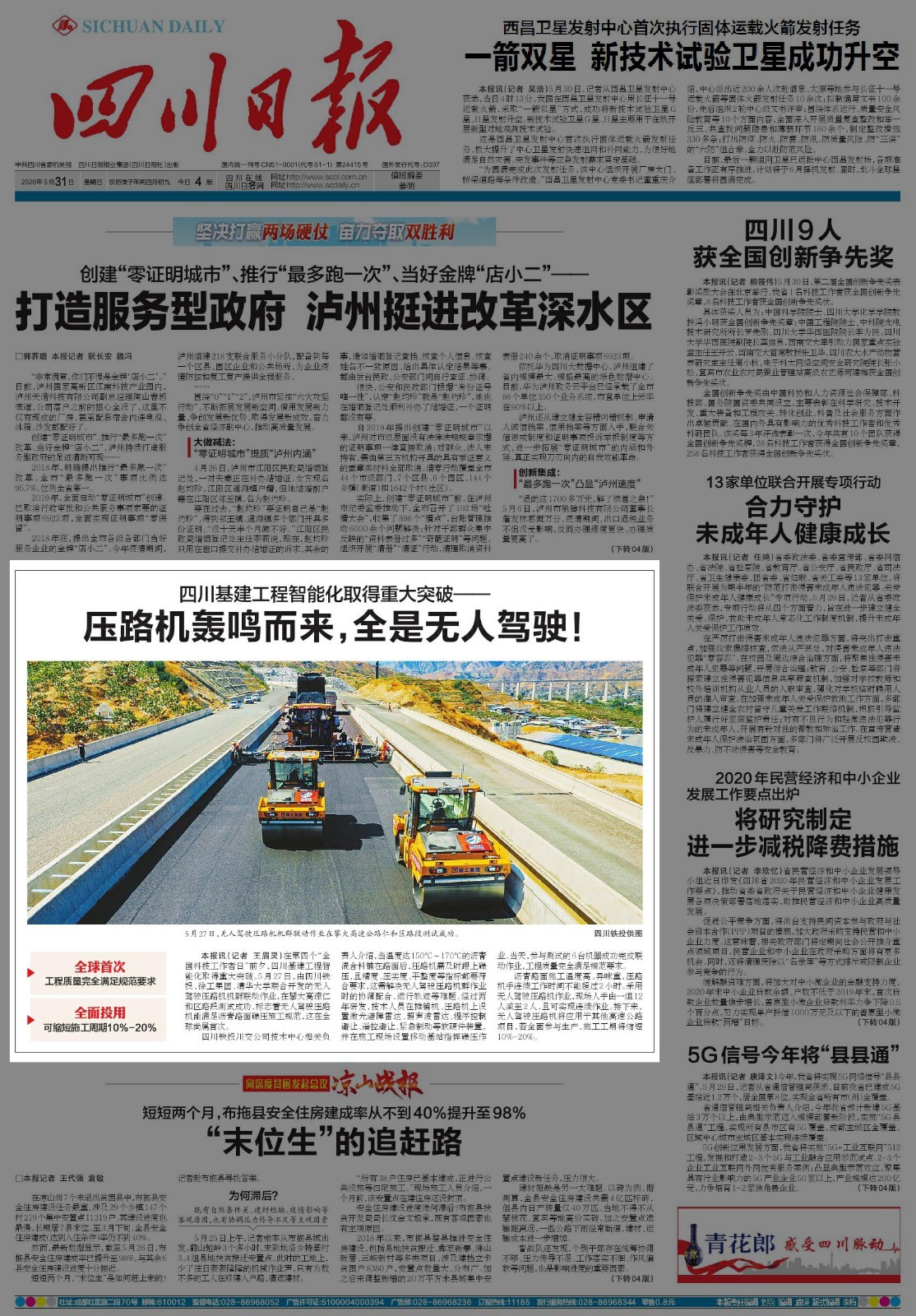 在第四个“全国科技工作者日”前夕,四川基建工程智能化取得重大突破。5月27日,由四川铁投、徐工集团、清华大学联合开发的无人驾驶压路机机群联动作业,在攀大高速仁和区路段测试成功,标志着无人驾驶压路机能满足沥青路面碾压施工规范,这在全球尚属首次。
