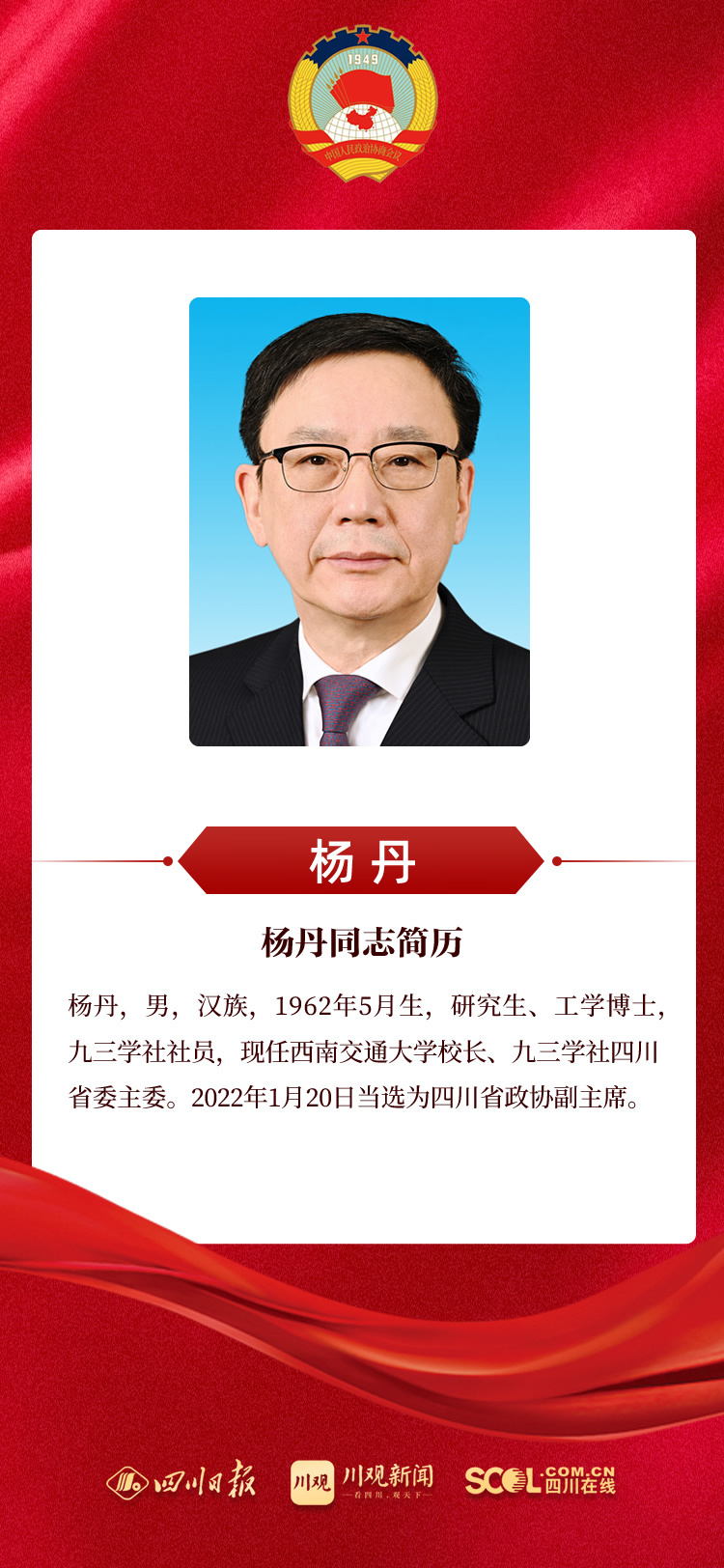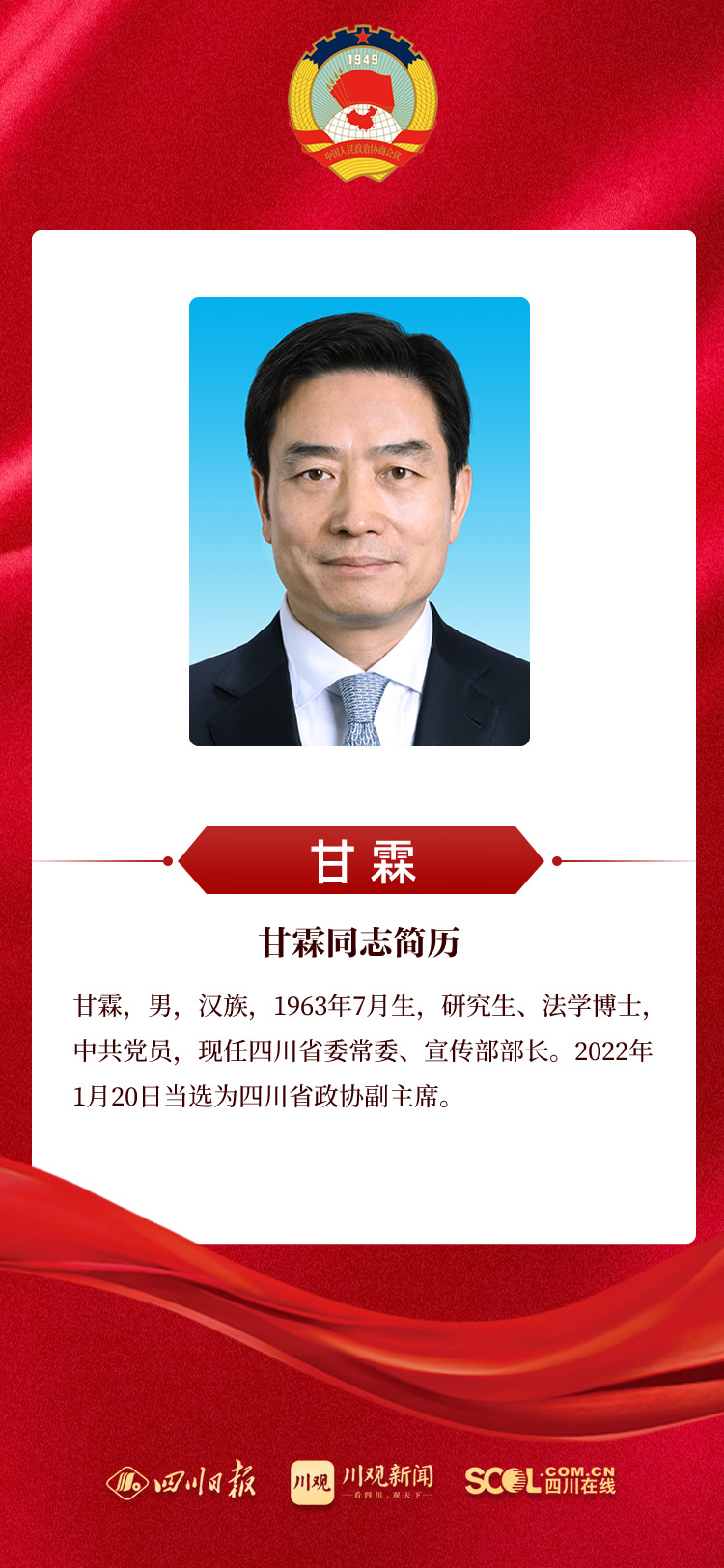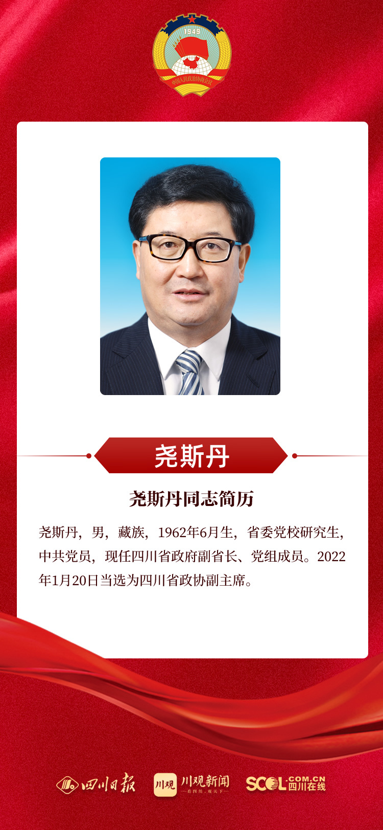 在1月20日下午举行的政协四川省第十二届委员会第五次会议第三次全体会议上,甘霖、尧斯丹、杨丹当选为政协四川省第十二届委员会副主席。