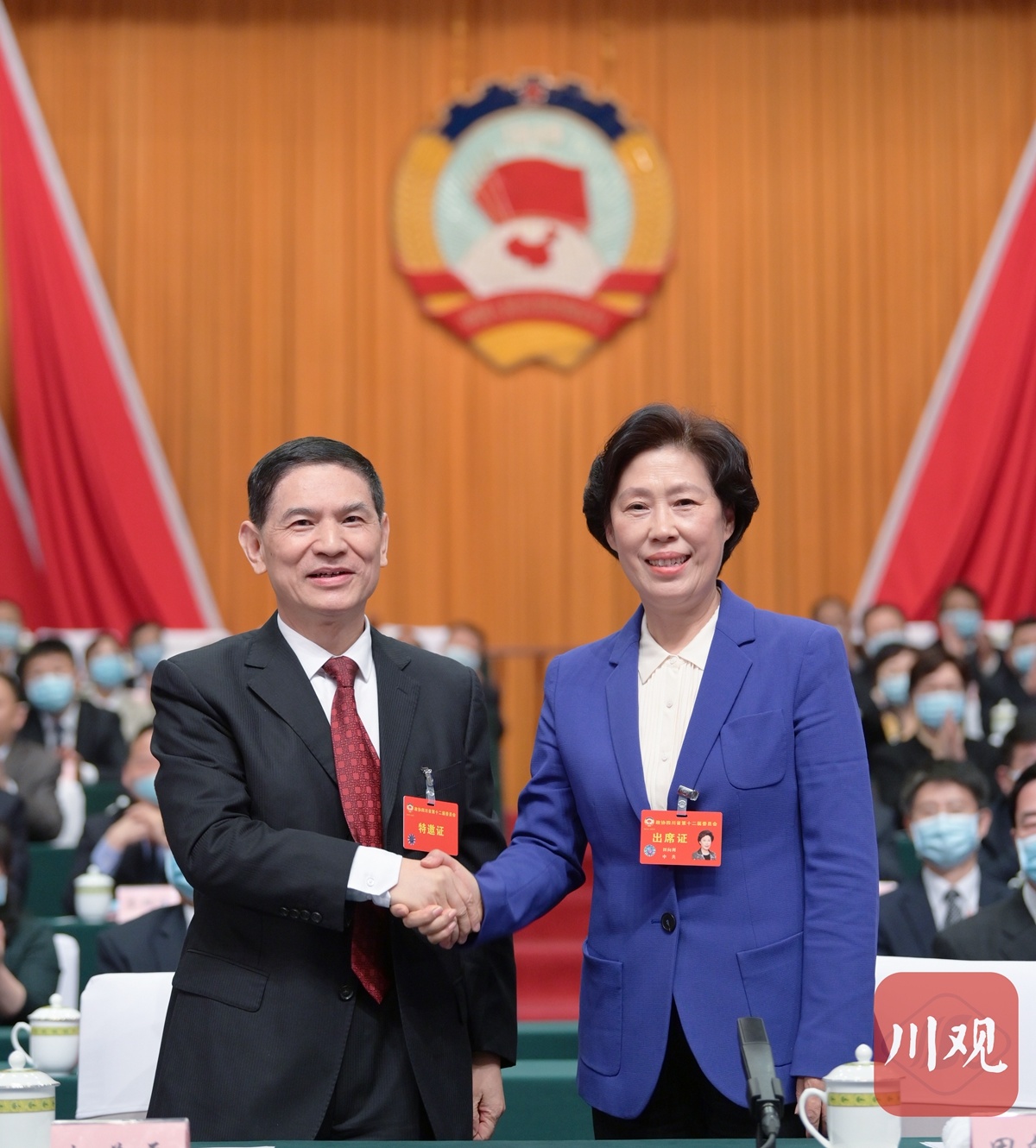 新当选的四川省政协主席田向利与省政协原主席柯尊平亲切握手。摄影 欧阳杰