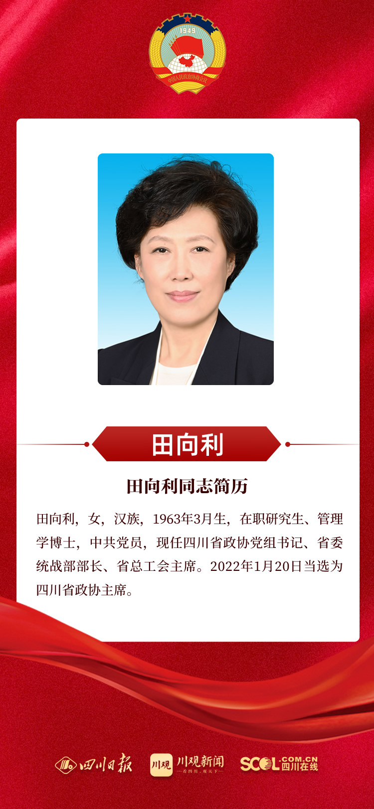 在1月20日下午举行的政协四川省第十二届委员会第五次会议第三次全体会议上,田向利当选为政协四川省第十二届委员会主席。