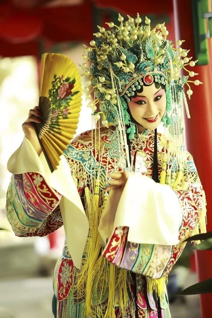 成都市川剧研究院常务副院长、川剧梅花奖得主陈巧茹《贵妃醉酒》扮相,《贵妃醉酒》中有不少扇舞、水袖等川剧功法。