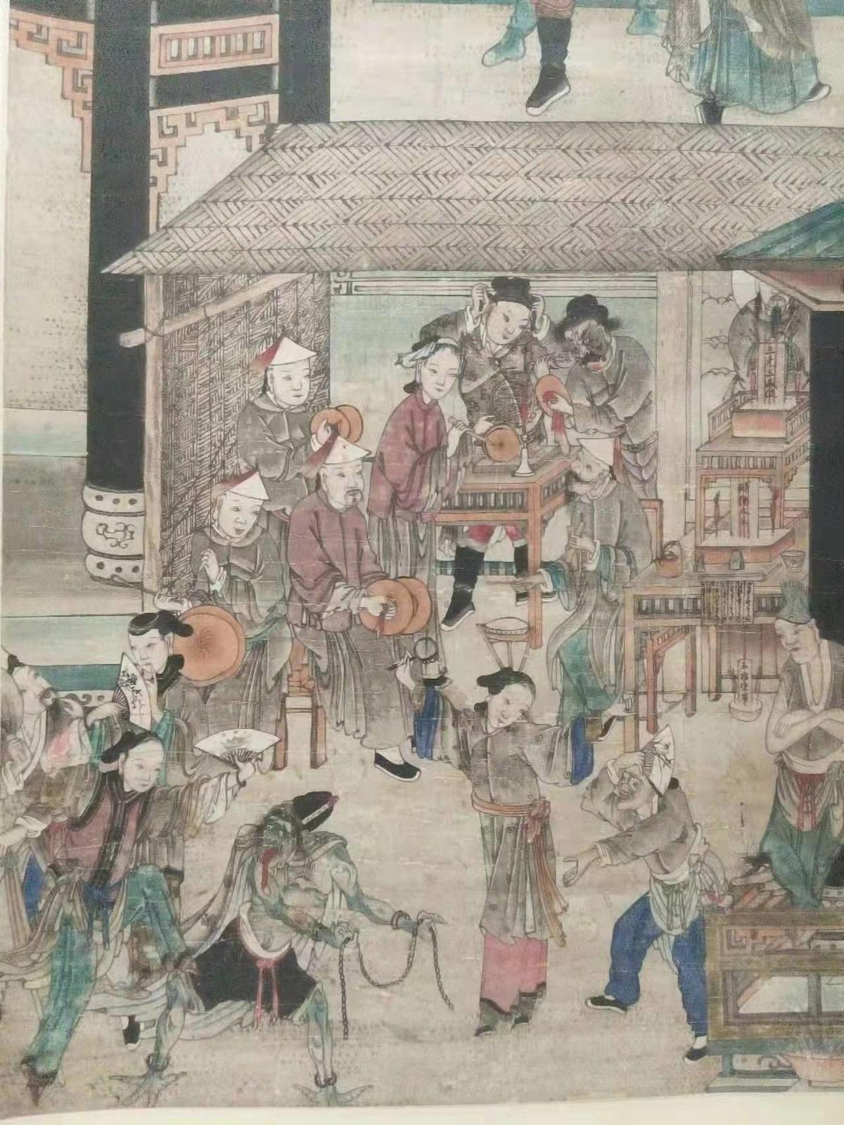 《川剧演出史》书籍封面:清代绘制的戏曲观演图,扮演戏目《牡丹灯》