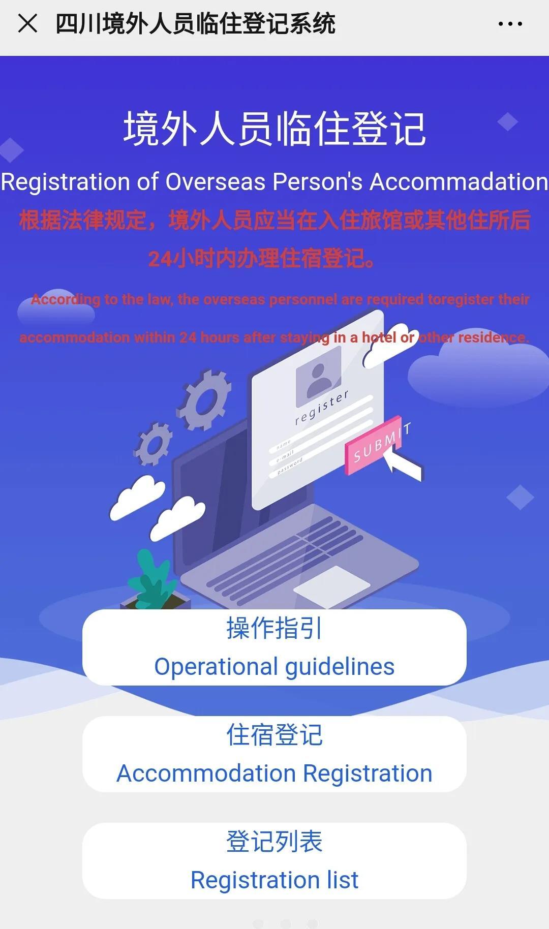 如何自助申报临时住宿登记?记者了解到,境外人员只需使用手机在微信端搜索“四川公安出入境”公众号,关注并点击“Foreign Citizen”模块,选择境外人员住宿登记即可办理。