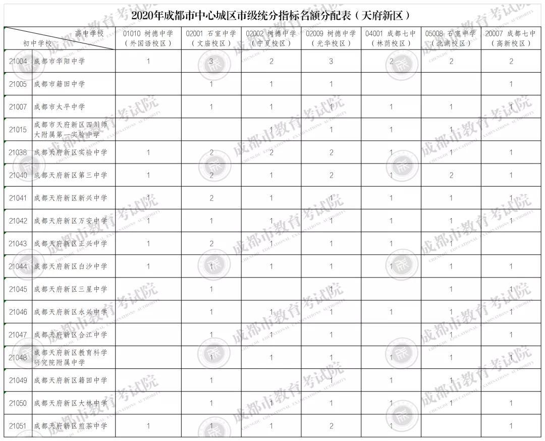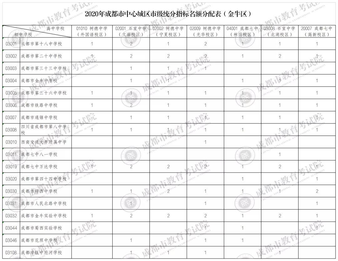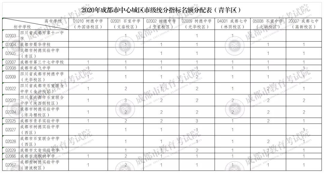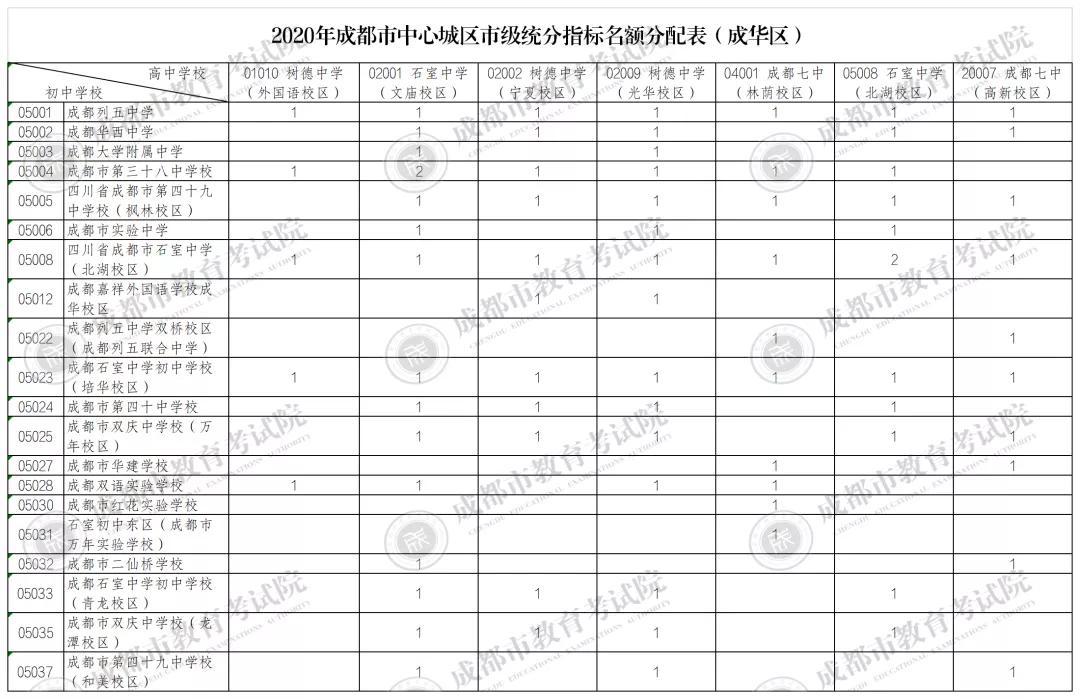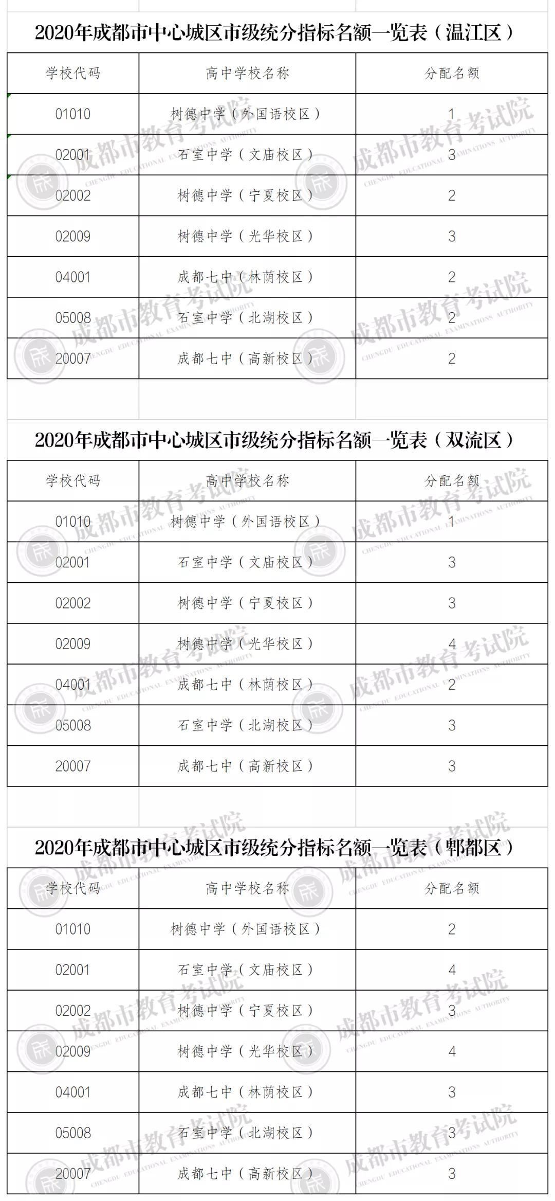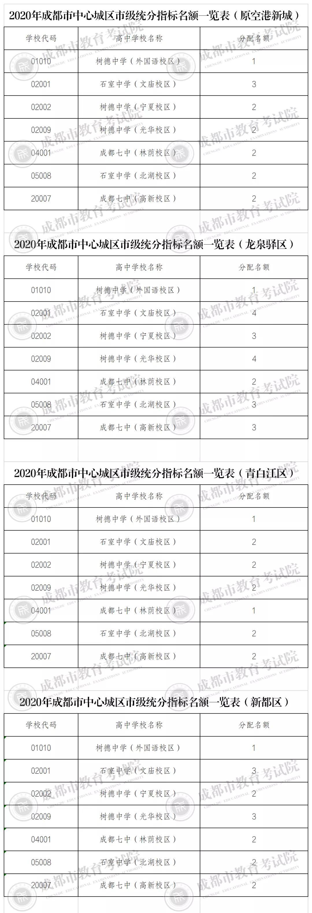 市直属学校指标由艺体指标、高层次人才子女指标、市级统分指标构成。今年,在市级统分指标生分配中,按照《成都市教育局印发<成都市公办初中强校工程实施方案>的通知》(成教办〔2019〕13号)关于“市、区(市)县教育行政部门在省级示范性普通高中指标到校生分配中向实验校予以倾斜”的要求,“5+2”区域18所公办初中强校工程实验校共获得成都石室中学、成都七中和成都树德中学指标到校生名额99个。市教育局要求区(市)县教育行政部门在省级示范高中指标生分配中也要向公办初中强校工程实验校倾斜。