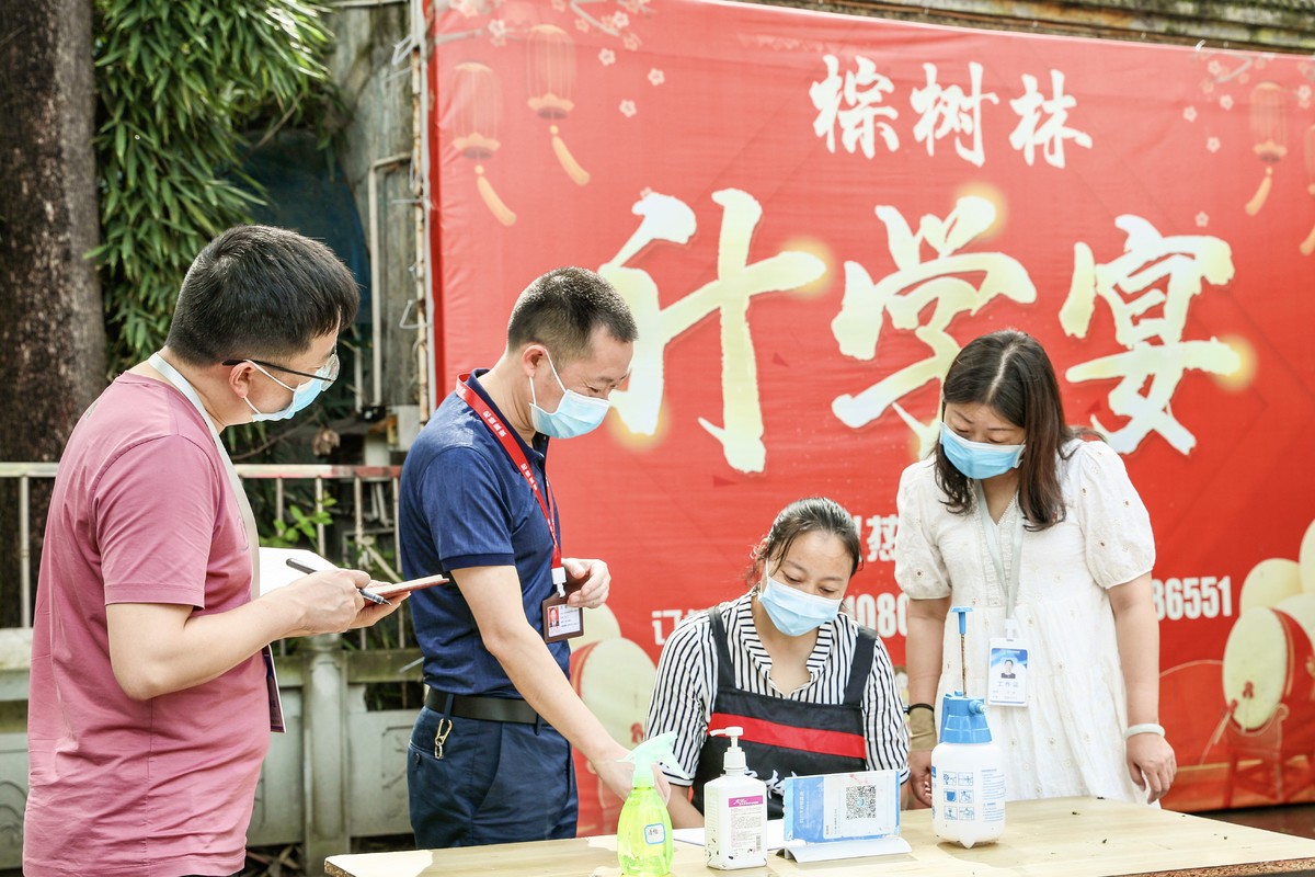 暑假期间,为严防党员干部违规操办“升学宴”“谢师宴”,成都彭州市纪委监委成立3个监督检查组,对酒店、农家乐等餐饮场所开展监督检查。图为去年8月20日,检查组在某农家乐了解情况。 张学伟 摄