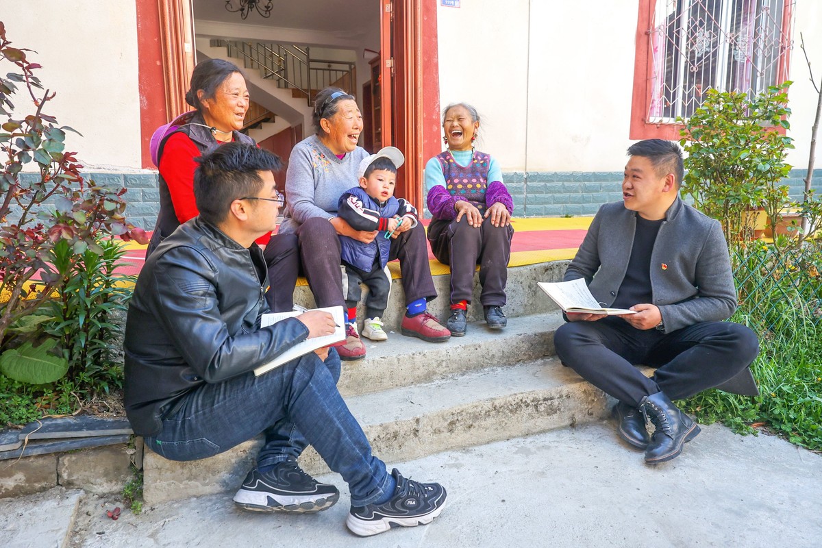 甘孜州康定市纪委监委紧盯重点环节,紧扣重要节点,强化执纪问责,驰而不息纠“四风”。图为2021年4月18日,康定市纪检监察干部在榆林街道新榆林村向藏族同胞了解相关情况。 杨代蔚 摄
