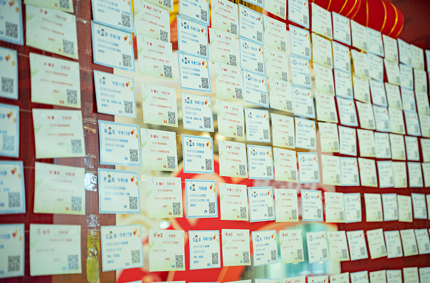 在内江万达广场甜蜜town等线下认领点,现场扫描微心愿卡片右下方二维码,完成对应微心愿的认领并登记。