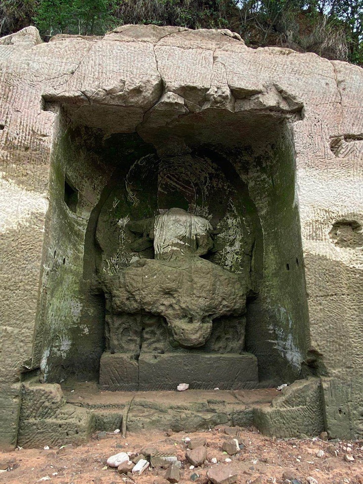 值得一提的是,仁寿境内的大佛并不只有黑龙滩这一尊。在仁寿文宫高家镇鹰头村,高达15.85米的牛角寨大佛,早在2006年就被纳入第六批全国重点文物保护单位,是全国唯一的胸佛。根据牛角寨大佛旁的石刻题记,大佛建成于唐中宗景龙元年(公元707年),迄今已有1300多年历史。大佛周围还散布着各种雕刻精致、姿态各异的摩崖造像群,融儒、释、道三教于一体,全国罕见,精品甚多,其中部分造像还入选《中国美术全集》。