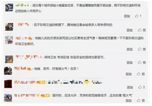 @賢者时光:只要规划地方,环境卫生做好,我觉得是挺好的。@Apologizehoney:可以摆摊,但是希望还是要严加管控卫生问题。别让烟火气变成乌烟瘴气@依y就:一直延续下去才能见效益