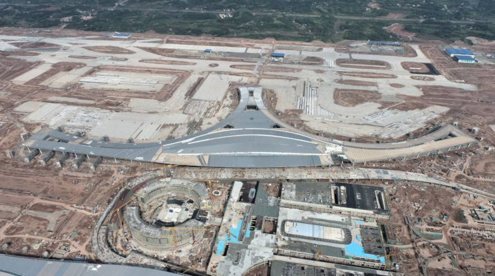 除屋面工程外,项目主体结构目前已全部完成,二次结构砌体已完成85%,高架桥已实现全面贯通,登机桥主体施工已完成,幕墙工程已完成70%。目前项目已开始进入精装修阶段。