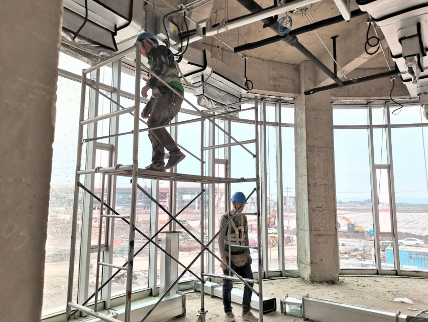 “最近我们主要在全力进行服务大楼的精装修,以及全面精装修之前的一些准备工作。”詹进生告诉记者,根据安排,项目将在6月底率先完成服务大楼精装修。时间紧任务重,现场各专业面施工都在穿插进行,服务大楼精装修工人已达到800余人,根据需要,后续还会继续增加人力物力,具备条件的作业面将会安排两班倒,实现24小时不间断施工。记者在现场看到,目前,服务大楼部分区域已经吊顶安装了龙骨、铺设了墙面。