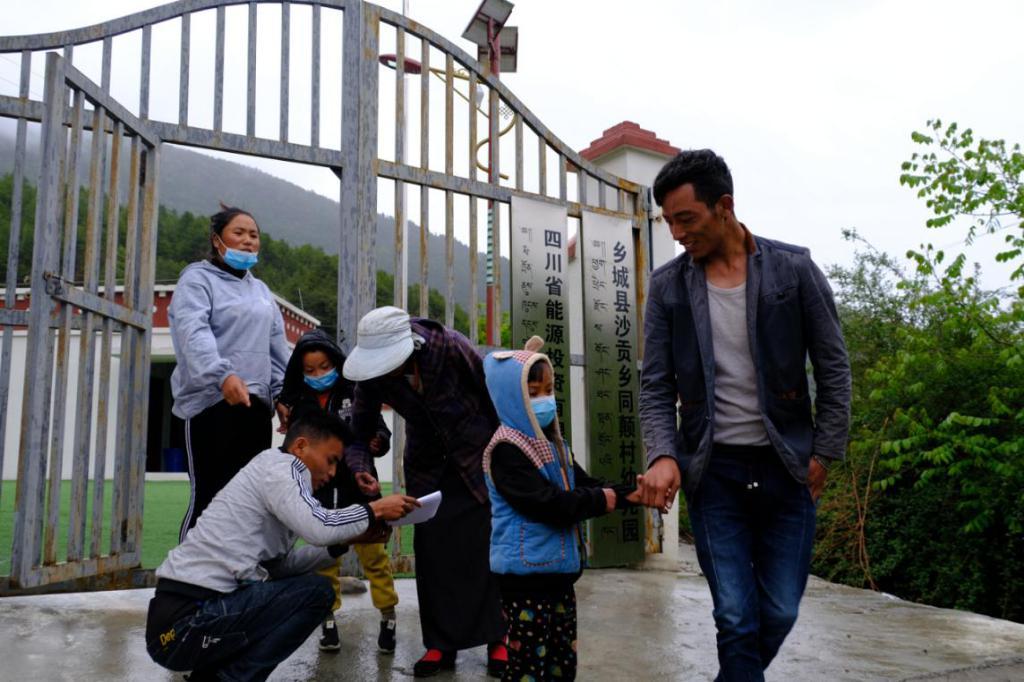 丹巴老师送孩子们离校