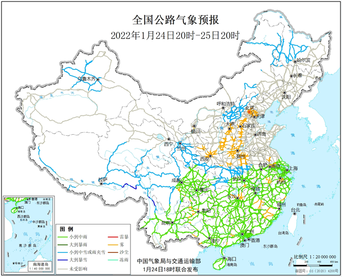 根据中国气象局与交通运输部1月24日联合发布的全国主要公路气象预报,24日20时至25日20时,四川境内有8条公路受天气影响明显↓↓