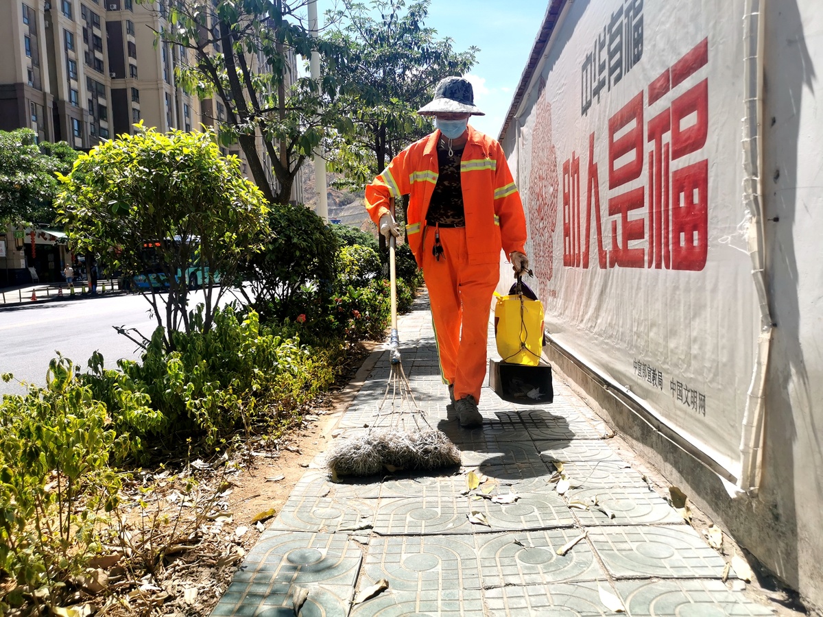 同一时间,57岁的环卫工王小华头顶烈日,开始今天第二场清扫工作。约1公里的道路,清扫一次需要花2小时左右,尽管高温天气佩戴口罩作业有些吃劲,但王小华挥动扫帚的速度仍未放缓。据攀枝花市卫健委相关人员介绍,目前攀枝花5个县(区)均无现症病例、全部为低风险区,但不等于没有风险,除乘坐厢式电梯、公共交通工具等人员密集情况下应戴好口罩,从事疫情防控的警察、保安、保洁人员、服务员工作时也要佩戴。