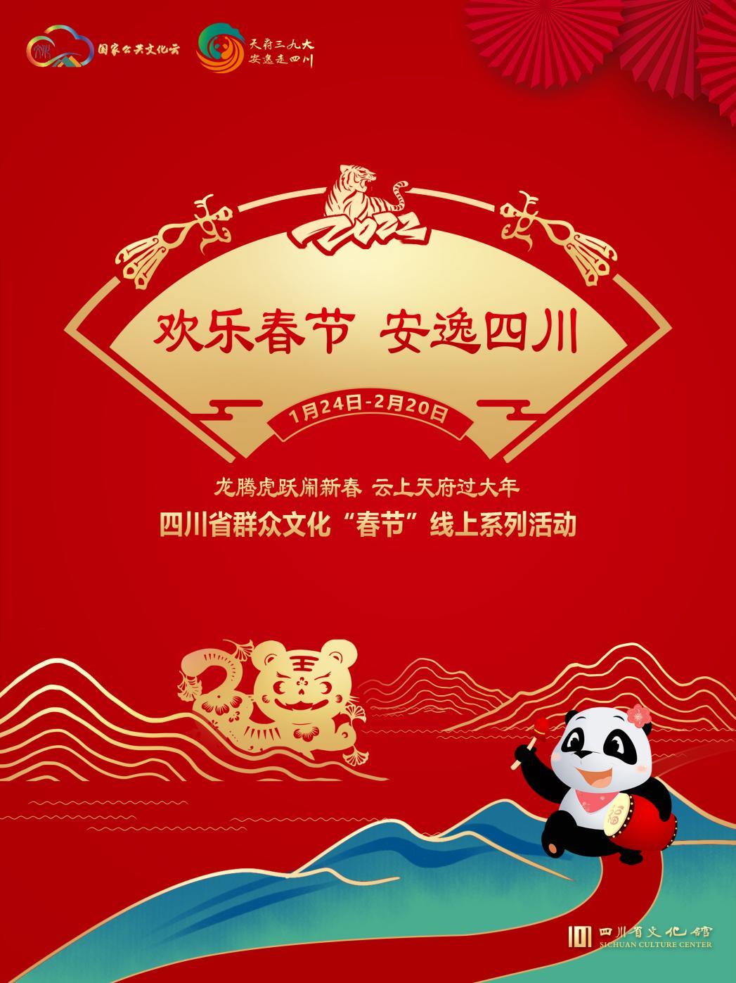 云端闹春,今年又有哪些新鲜玩法?1月25日,记者从省文化馆了解到,今年春节期间,四川群众文化活动突出“欢乐春节 安逸四川”主题,坚持“非必要不举办”原则,落实“小型、多样、分散”要求,缩小线下活动规模、丰富线上活动供给。同时,为营造“虎迎盛世春、欢乐吉祥年”的浓郁节庆氛围,四川省文化馆特别策划推出“龙腾虎跃闹新春·云上天府过大年”——2022年四川省群众文化“春节”线上系列活动。