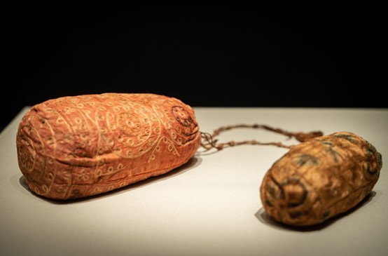 红地刺绣圆珠纹绫袋 (唐|甘肃省博物馆)