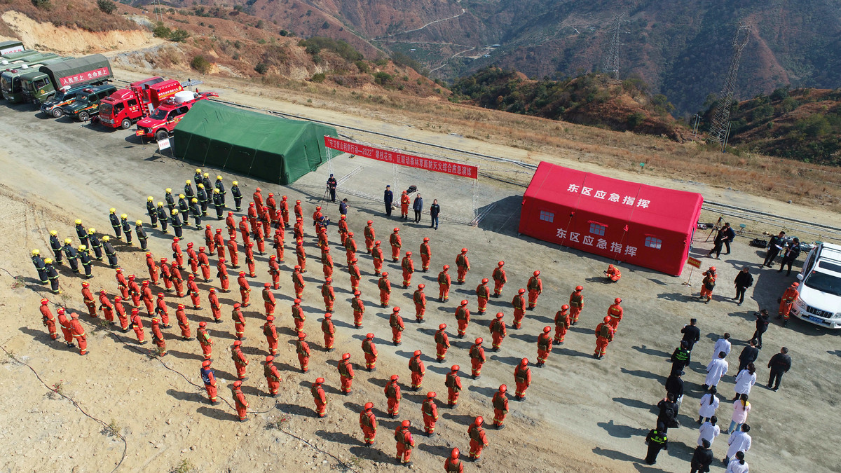 “东区森防指值班室,我是东区银江镇沙坝村护林员李波,在巡逻时看到花滩附近山坡林子里面发现明火,火势较大!”1月24日下午15时,攀枝花市东区高粱坪园区虹亦尾矿库后山上演了一场市、区联动森林草原防灭火综合应急演练。