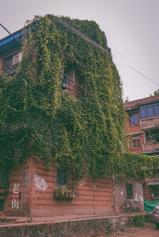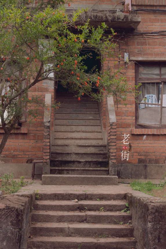 再往上走,红砖青瓦,矮楼灰砖