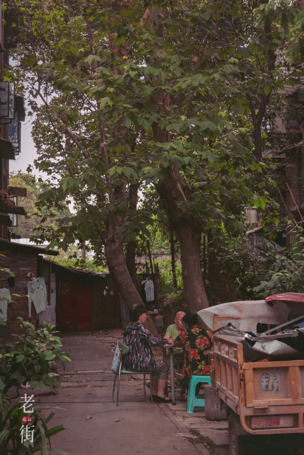 两三张座椅,歪斜的老树