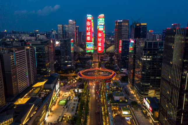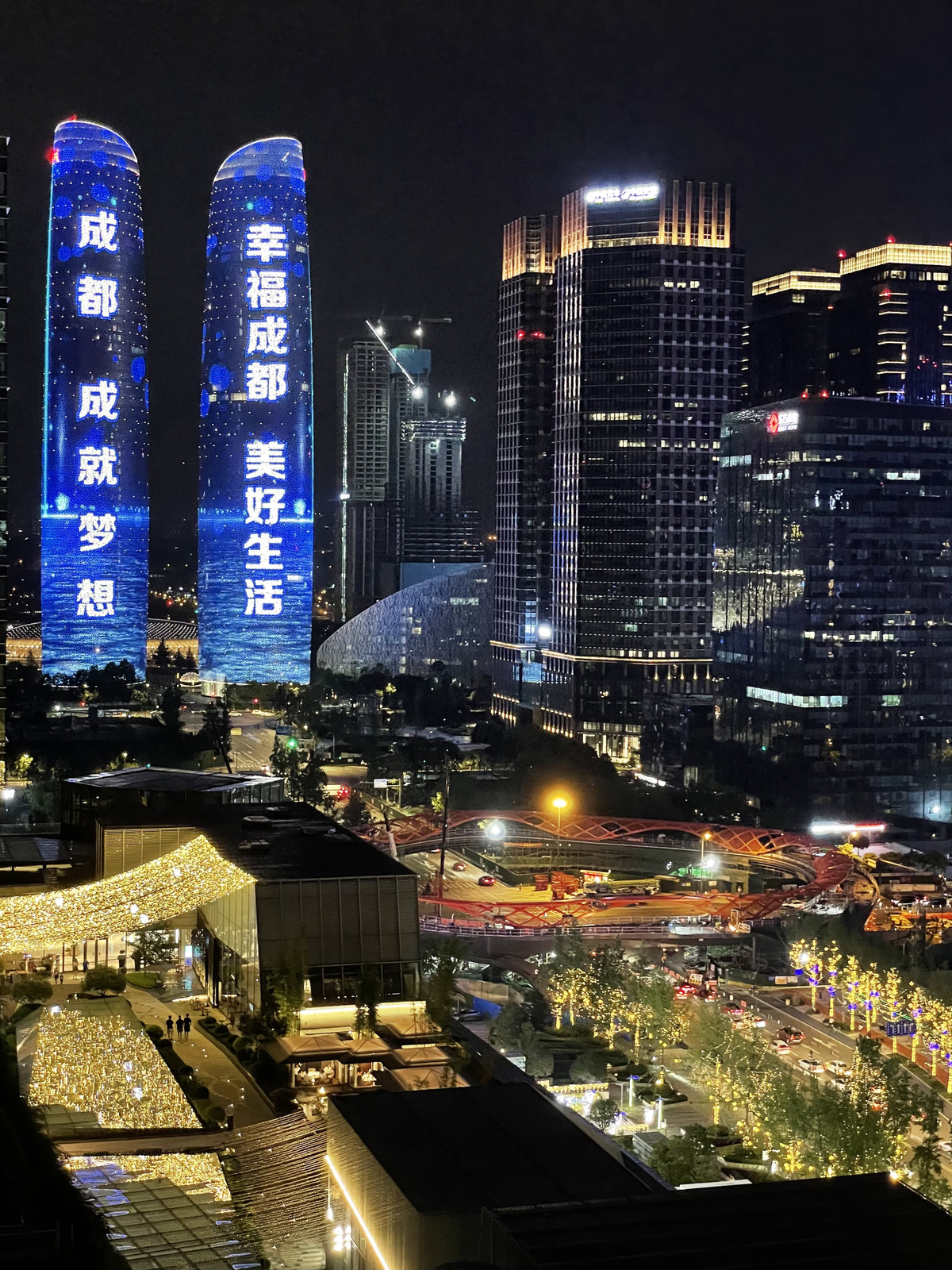 它的官方名叫天府双塔,2021年春节期间,靠着超炫灯光秀在网络刷屏,从此“出圈”,成为网红打卡地。
