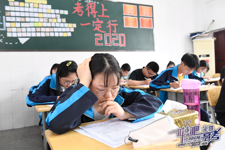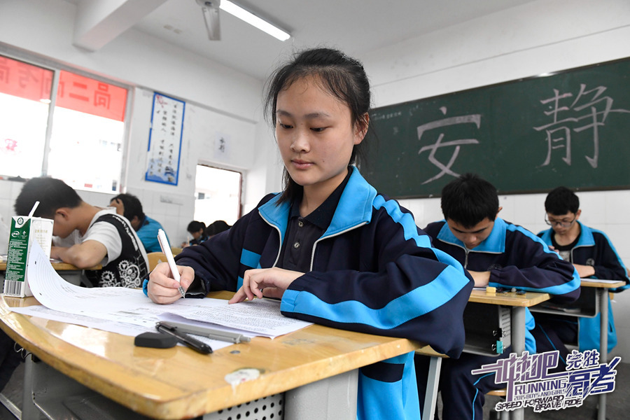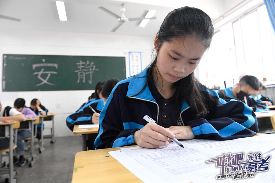 6月9日,在南充市嘉陵一中高三教室,高三学生在教室内参加高考模拟考试,专注答题。
